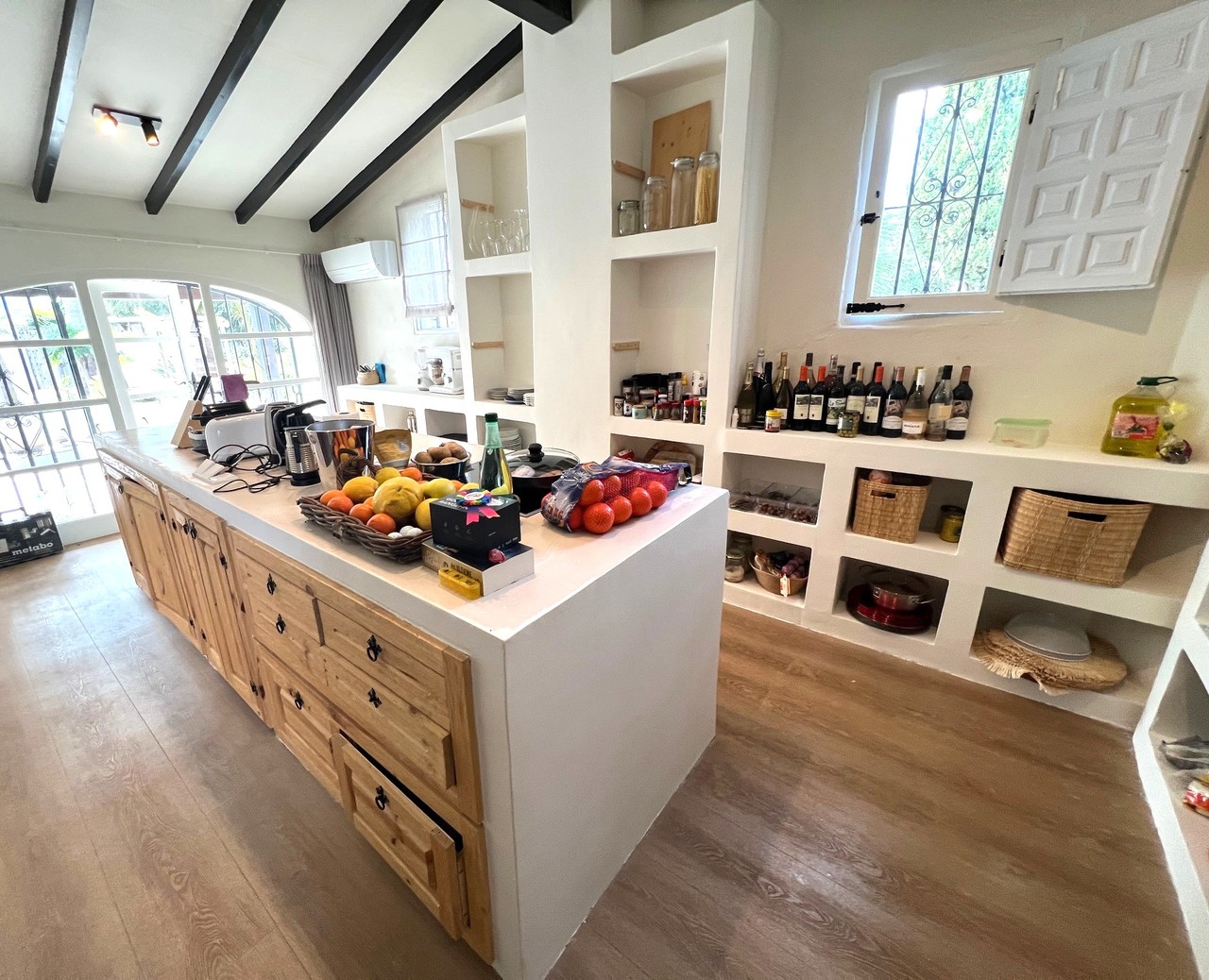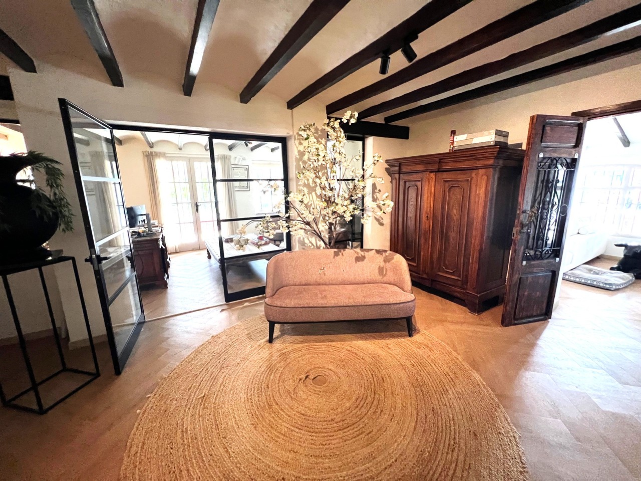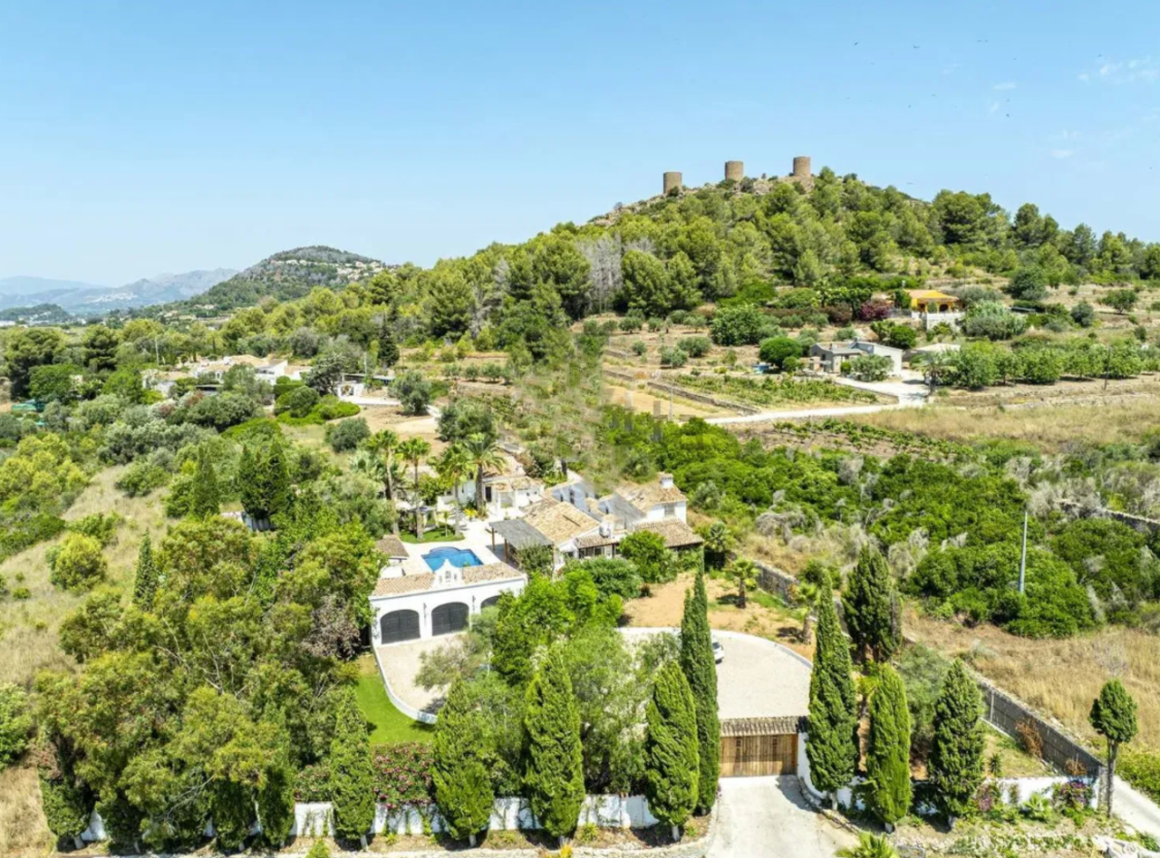 Renovated Mediterranean estate with independent apartments in Jesús Pobre – Dénia Located in Jesús Pobre (Dénia), one of the most sought-after areas of the Costa Blanca, this fully renovated high-end estate combines authentic Mediterranean style with a high level of comfort, privacy and multiple usage possibilities. The property sits on a completely flat plot and has been renovated with taste and care, offering both an exclusive private residence and an attractive investment opportunity. The main house, distributed over two floors, stands out for its balance and warm atmosphere. On the ground floor, there is a designer kitchen with central island, ideal for enjoying time with family and friends. The dining area with fireplace and the spacious, light-filled living room create a welcoming and functional space. In addition, there is a versatile room, currently used as an office, which can easily be converted into an additional bedroom. The upper floor features the master suite, with walk-in wardrobe, en-suite bathroom and a private terrace with open views of the Montgó. As a major added value, the estate includes two fully renovated independent apartments, each with two bedrooms and one bathroom, ideal for guests, holiday rentals or the development of a small boutique rural accommodation concept. The property also offers a large closed garage for three vehicles, with the possibility of converting it into additional living space or an independent apartment, further increasing its investment potential. The outdoor area provides a true private resort feeling, with spacious terraces, a large swimming pool, chill-out areas, a fully equipped summer kitchen and an extensive garden to enjoy the Mediterranean climate all year round. Key features: Fully renovated estate Main house + 2 independent apartments Fireplace Air conditioning (split units) throughout the property Independent laundry area Closed garage for 3 vehicles (conversion possible) Additional exterior parking Flat and private plot